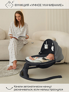 Комфортные ремни безопасности с гибкой регулировкой, надежно удерживают ребенка в качелях, обеспечивая ему повышенную безопасность. С помощью пульта ДУ, который идет в комплекте, вы легко сможете управлять функциями электрокачели на расстоянии, продолжая заниматься домашними делами. 5 скоростей укачивания позволяет настроить интенсивность качания в соответствии с вашими предпочтениями.
