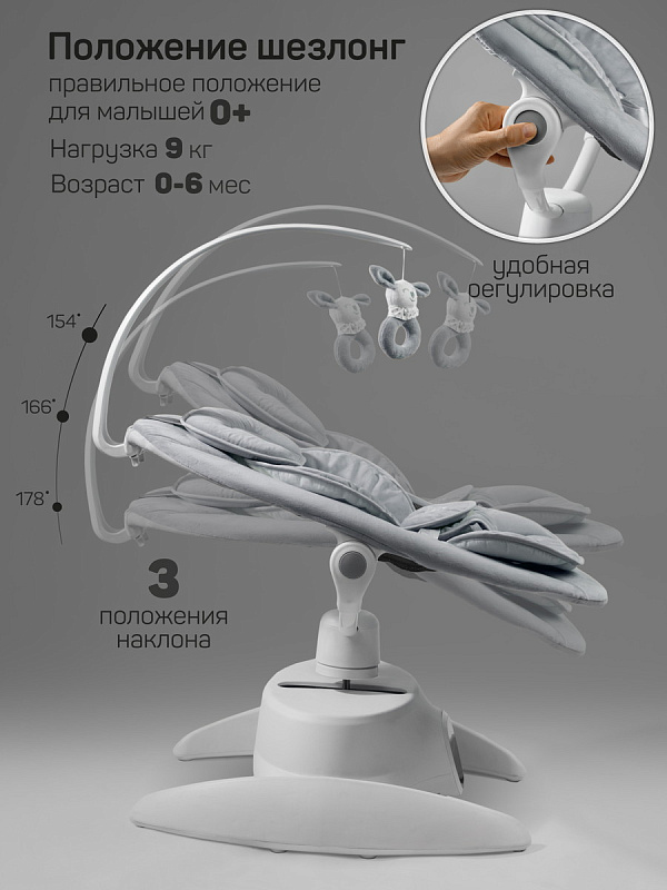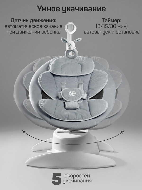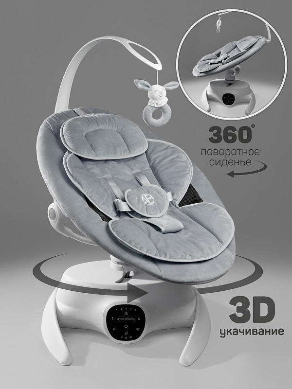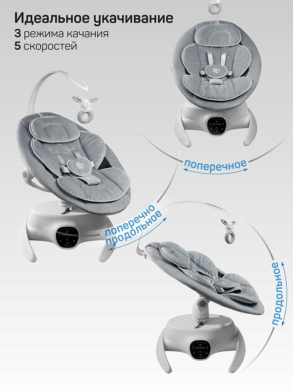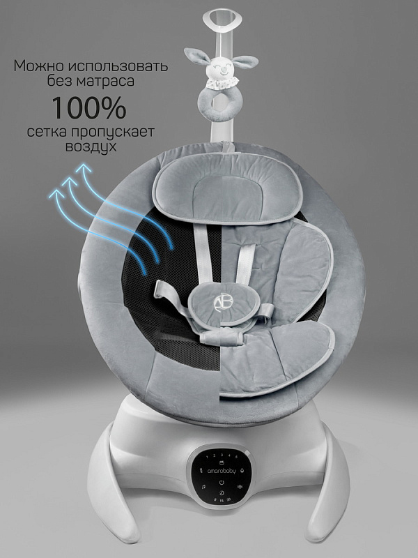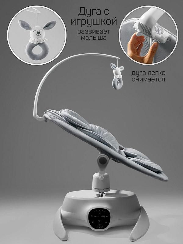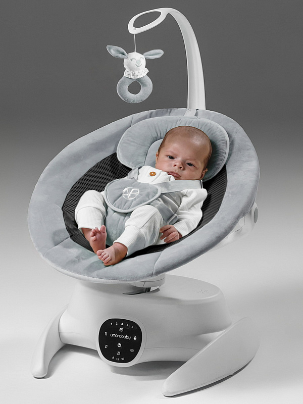 Электронные качели для малышей Amarobaby Smart swing - это удачное решение для заботливых мам. Широкий спектр функций позволит вашему малышу комфортно и безопасно проводить время, пока вы сможете заняться домашними делами или просто отдохнуть. 12 встроенных мелодий, а также функция воспроизведения через USB и Bluetooth позволит вам легко подобрать необходимую мелодию или аудиокнигу для вашего малыша. Ремни безопасности надежно удерживают ребенка в качелях, обеспечивая ему безопасность и при этом не создают дискомфорт. Мягкий плюшевый материал будет приятен для тела, а сетчатая секция предотвратит перегревание в жаркую погоду. Также в комплекте идет теплый матрасик. С помощью пульта ДУ, который идет в комплекте, вы легко сможете управлять функциями электрокачели на расстоянии. 3 разных типа качания с механическим переключателем и 5 встроенных скоростей позволят подобрать оптимальную комбинацию для вашего ребенка. Электрокачели для новорожденных могут быть подключены, как к сети, так и через элементы питания (4*АА). Таким образом, вы можете использовать качели даже в отсутствие электричества или в поездках. Качели Amarobaby имеют функцию автоматического отключения по таймеру через 8, 15 или 30 мин. Стильный дизайн, многофункциональность, надежность и безопасность делают качели Amarobaby Smart swing отличным выбором для вас и вашего ребенка.