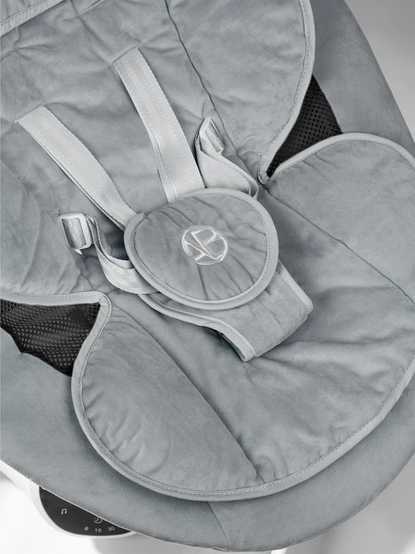 Ремни безопасности надежно удерживают ребенка в качелях.