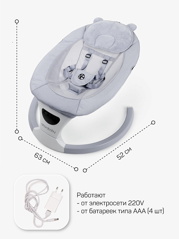 Электронные качели для малышей Amarobaby Teddy swing - это идеальное решение для заботливых мам. Они предлагают широкий спектр функций, чтобы обеспечить комфорт и развлечение для вашего малыша. Приятные мелодии из 12 предложенных вариантов, создадут вашему малышу спокойную и уютную атмосферу. А с помощью функции Bluetooth вы сможете поставить любую детскую песенку, которая по душе вашему малышу. Так же вы можете воспользоваться в usb носителем, заранее записав на него любимые сказки и мелодии в формате mp3. Ремни безопасности надежно удерживают ребенка в качелях, обеспечивая ему безопасность и комфорт. С помощью пульта ДУ, который идет в комплекте, вы легко сможете управлять функциями электрокачели. Пятискоростной режим укачивания позволяет настроить интенсивность качания в соответствии с предпочтениями вашего младенца. Электрокачели для новорожденных оснащены очаровательными мягкими игрушками, которые закреплены на капюшоне в непосредственной близости от ребенка. Это стимулирует развитие мелкой моторики рук и обеспечивает дополнительное развлечение для малыша. Чтобы обеспечить питание электрокачелей, вы можете использовать адаптер питания, который входит в комплект, или установить 4 батарейки типа ААА (в комплект не входят). Таким образом, вы можете использовать качели даже в отсутствие электричества или в поездках. Электрокачели Amarobaby имеют функцию автоматического отключения по таймеру через 8, 15 или 30 мин. Модель обладает необычным, стильным дизайном, который впишется в любой интерьер. Возможность использовать качели без матрасика в жаркую погоду позволит ребенку ощутить дополнительный комфорт во время сна, сетчатая спинка предотвратит перегревание. Так же матрасик оснащен двумя вариантами покрытия с разных сторон: лен и плюшевая ткань, чтобы сделать использование качели еще более комфортным для вас и вашего ребенка. Вы сможете менять ткань в зависимости от ваших предпочтений.