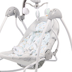 Родителям будет удобно управлять качелями с пульта дистанционного управления - регулировать скорость, включать мелодии или звуки природы, увеличивать или уменьшать громкость музыки, если малыш засыпает. На электронном мобиле со светом 3 съемные мягкие игрушки, которые обязательно заинтересуют ребенка.