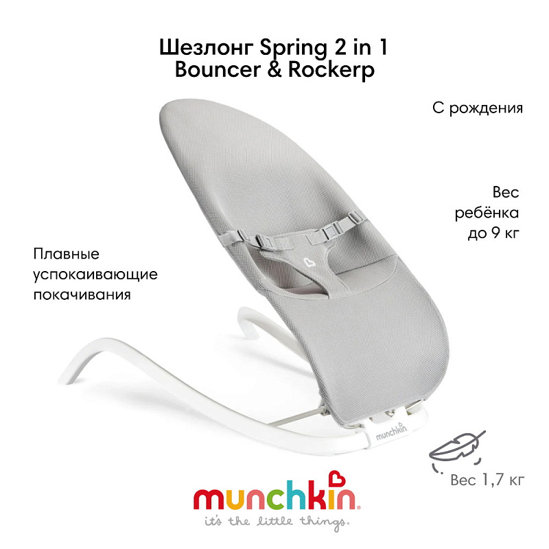 Детские качели шезлонг Munchkin Spring 2 in 1 Bouncer & Rocker серый