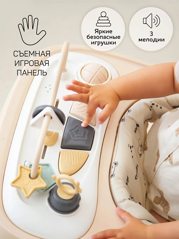 Детские ходунки Amarobaby Happy Steps с электронной игровой панелью бежевый