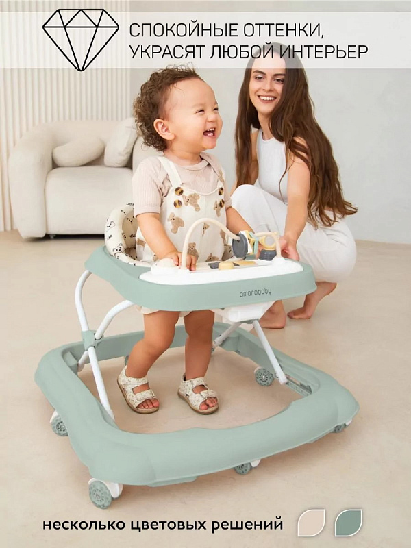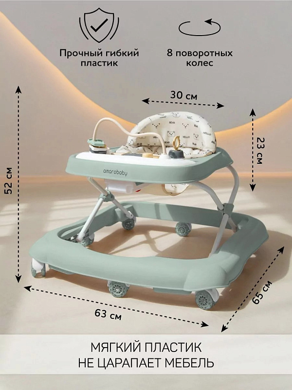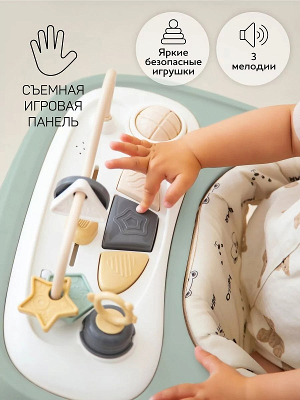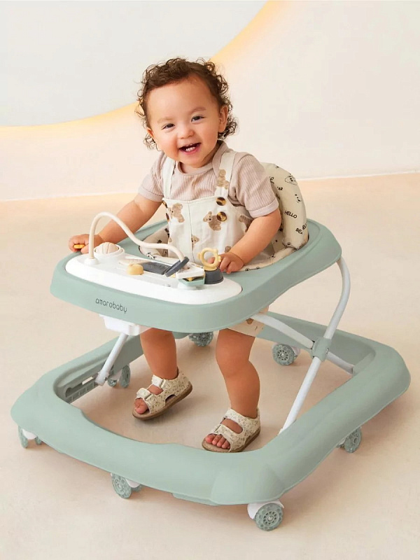 Детские ходунки Amarobaby Happy Steps с электронной игровой панелью зелёный