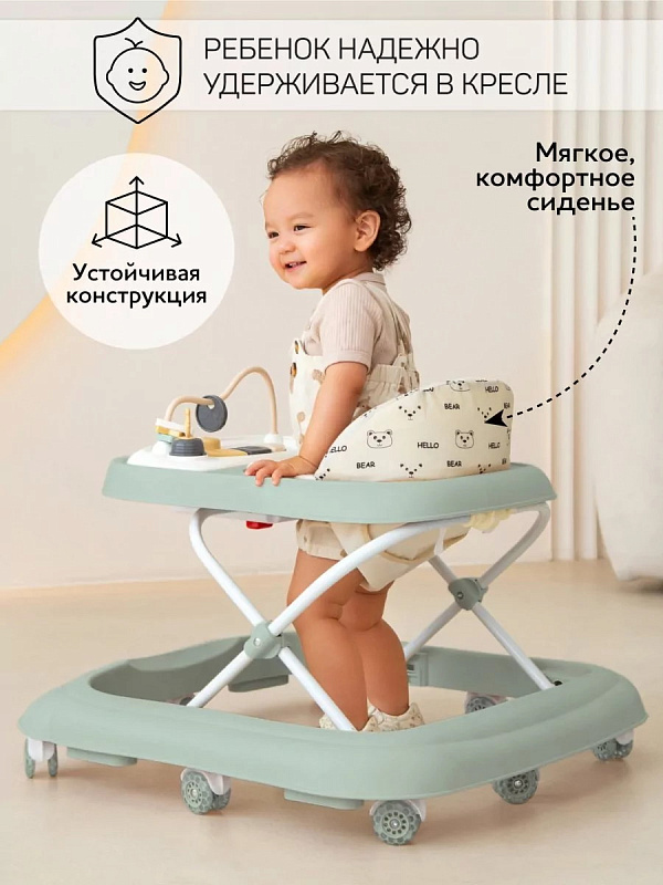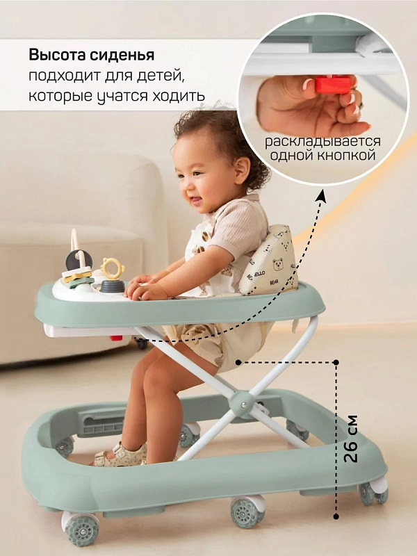 Детские ходунки Happy Steps - это идеальное средство для развития вашего малыша. Разработаны с учетом безопасности и предназначены для детей от 6 до 12 месяцев, весом не более 12 кг. Они не только помогут ему освоить первые шаги, но и станут незаменимым помощником в исследовании окружающего мира. Игровая панель со звуковыми эффектами добавит интерактивности и увлекательности в процесс использования ходунков. Ребенок будет наслаждаться игрой, развивая мелкую моторику и слух.