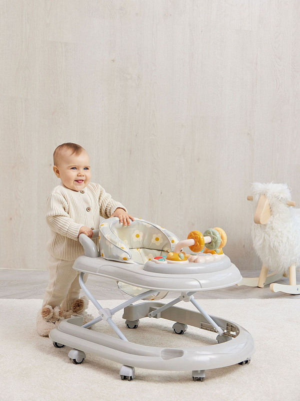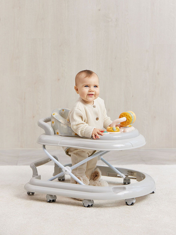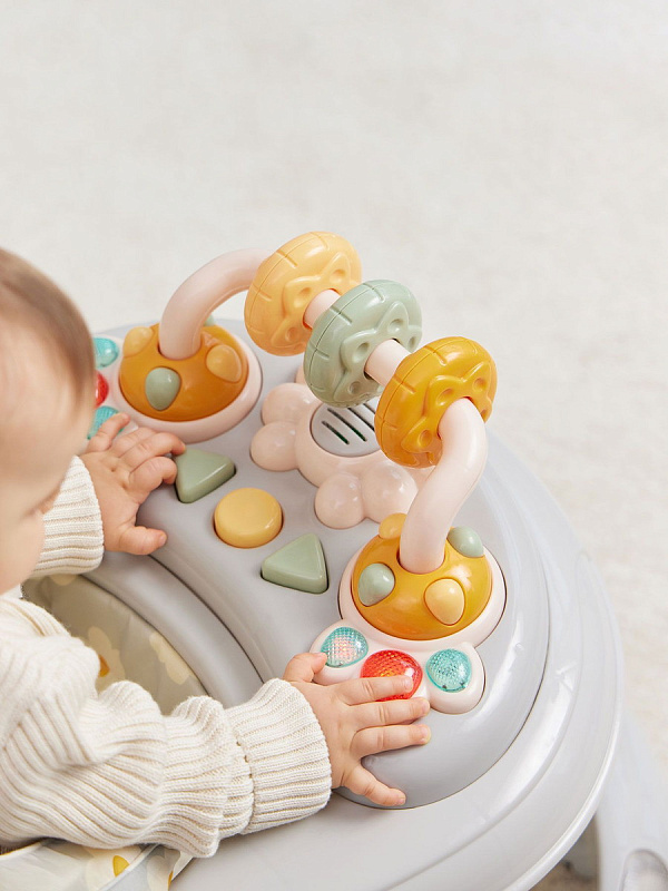 Ходунки Smiley V2 - отличный выбор для развития координации движений и обучения ребенка держать равновесие. Мягкие цвета привлекут внимание малыша, а игровая панель с звуковыми эффектами и игрушками помогут ему развить зрение, слух, хватательный рефлекс и мелкую моторику. Удобное сиденье легко регулируется в 3-х положениях в зависимости от роста ребенка.