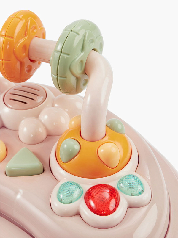 - Развивающие игрушки на панели механически вращаются.