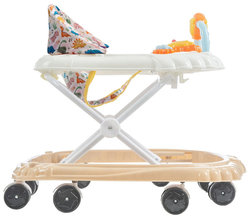 Яркая модель понравится каждому малышу! Съемная панель оснащена увлекательными игрушками с музыкальным сопровождением. Сидение регулируется в трех положениях по мере роста ребенка. Восемь колес расположенных по периметру базы обеспечивают прочность и маневренность конструкции, при необходимости их можно поставить на тормоз. Легкую и компактную модель удобно хранить в сложенном виде - не занимает много места.