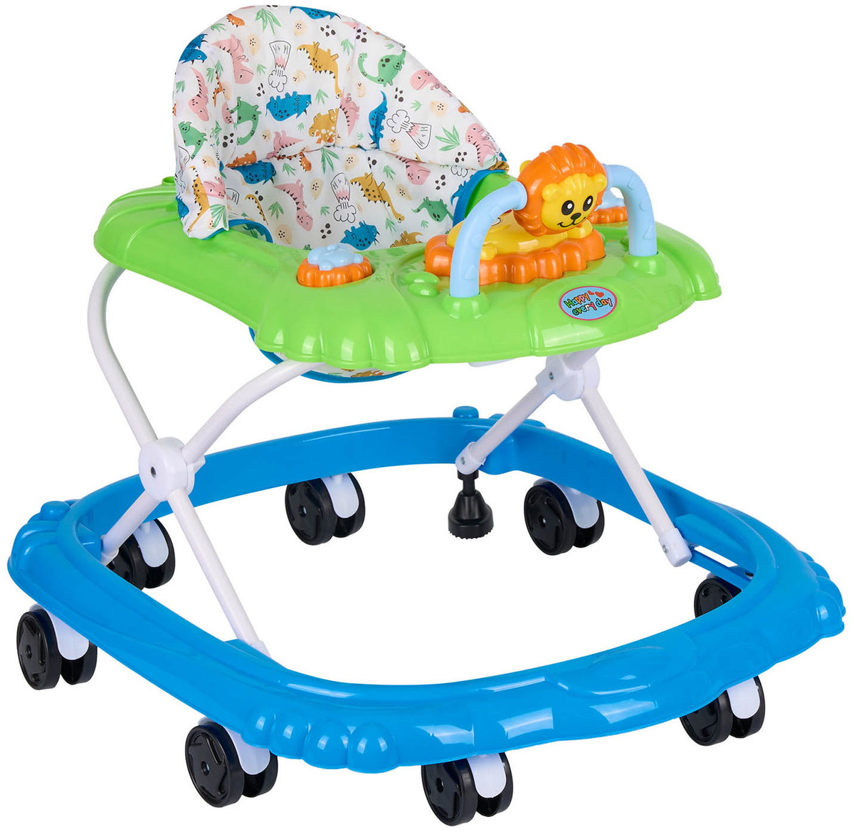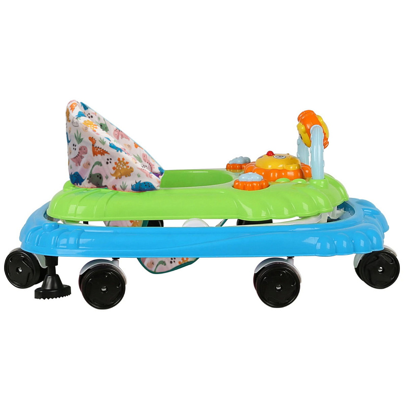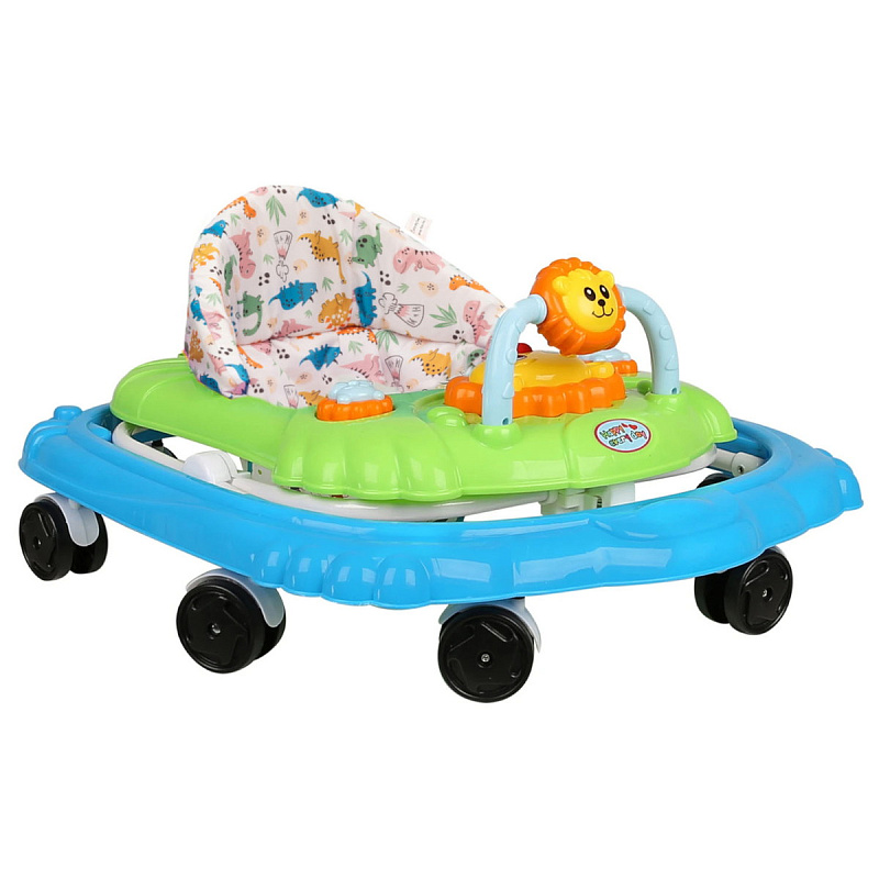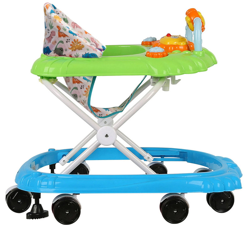 Яркая модель понравится каждому малышу! Съемная панель оснащена увлекательными игрушками с музыкальным сопровождением. Сидение регулируется в трех положениях по мере роста ребенка. Восемь колес расположенных по периметру базы обеспечивают прочность и маневренность конструкции, при необходимости их можно поставить на тормоз. Легкую и компактную модель удобно хранить в сложенном виде - не занимает много места.