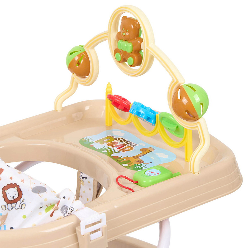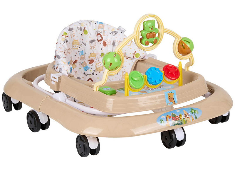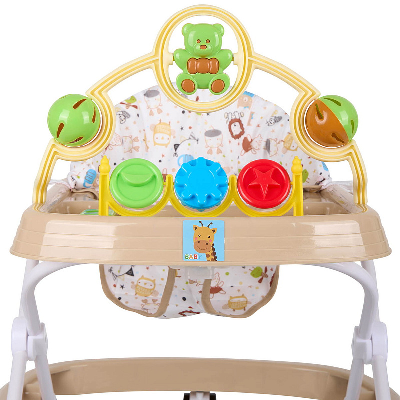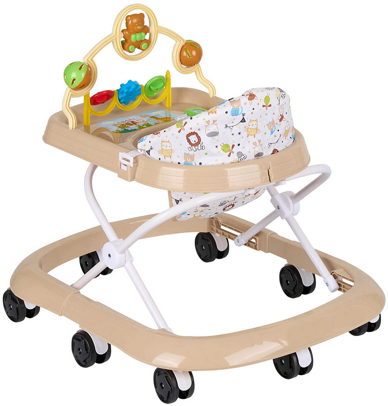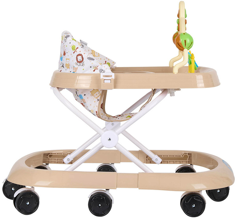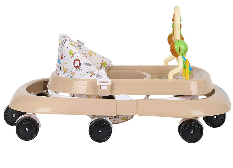 Ходунки в оригинальном ярком дизайне с игровой панелью дополненной приятной мелодией. Погремушки выполнены в оригинальной форме, которые помогут в развитии мелкой моторики малыша. Сидение регулируется в четырех положениях, которые можно менять по мере роста ребенка. Восемь колес расположенных по периметру базы обеспечивают прочность и маневренность конструкции. Ходунки компактного размера и легко складываются, поэтому не занимают много места при хранении.