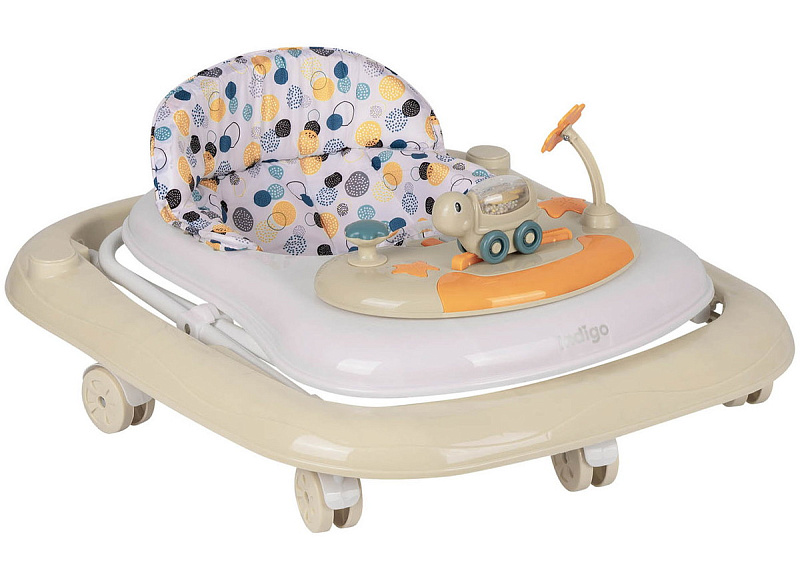 Ходунки TURTLE от бренда Indigo — функциональное решение для малышей, которые начинают делать свои первые шаги. Модель оснащена прочной конструкцией и устойчивым основанием с 7 колесами диаметром 6 см, что обеспечивает плавное движение по любой поверхности. Интерактивная игровая панель со световыми элементами и пятью мелодиями превращает обучение ходьбе в увлекательную игру.