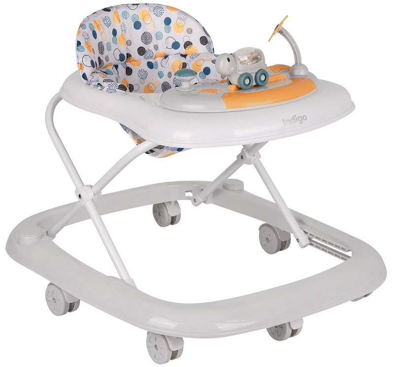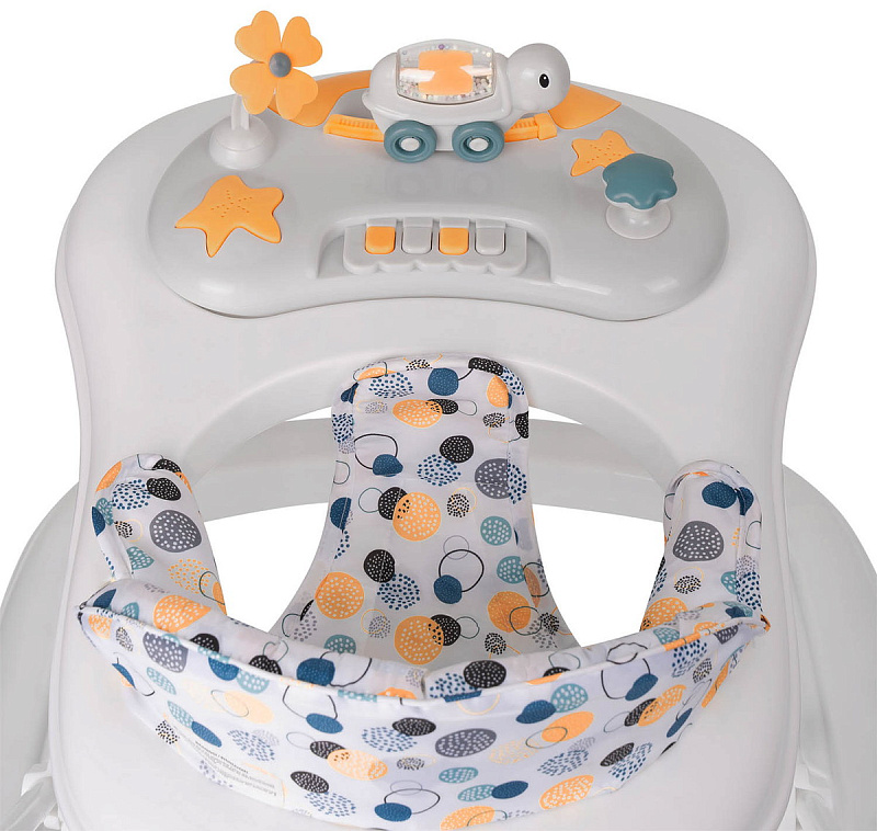 Ходунки TURTLE от бренда Indigo — функциональное решение для малышей, которые начинают делать свои первые шаги. Модель оснащена прочной конструкцией и устойчивым основанием с 7 колесами диаметром 6 см, что обеспечивает плавное движение по любой поверхности. Интерактивная игровая панель со световыми элементами и пятью мелодиями превращает обучение ходьбе в увлекательную игру.