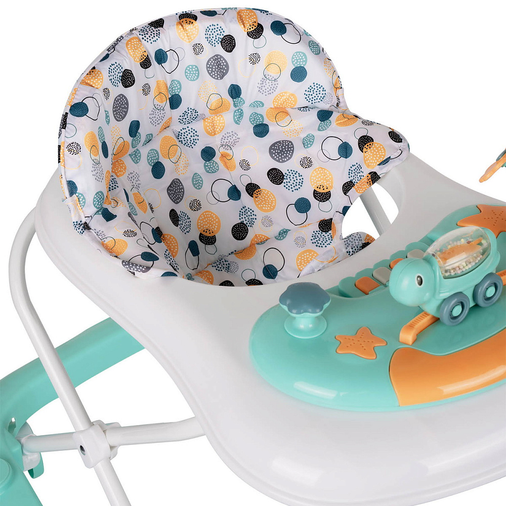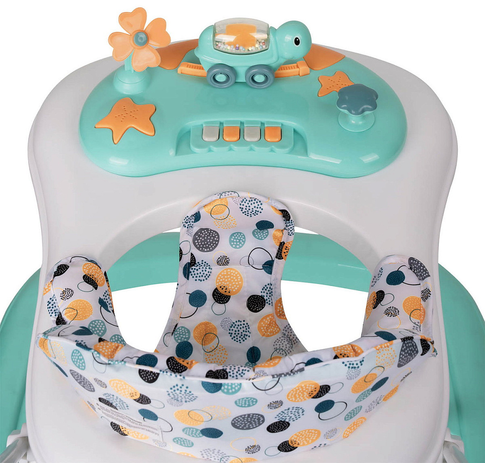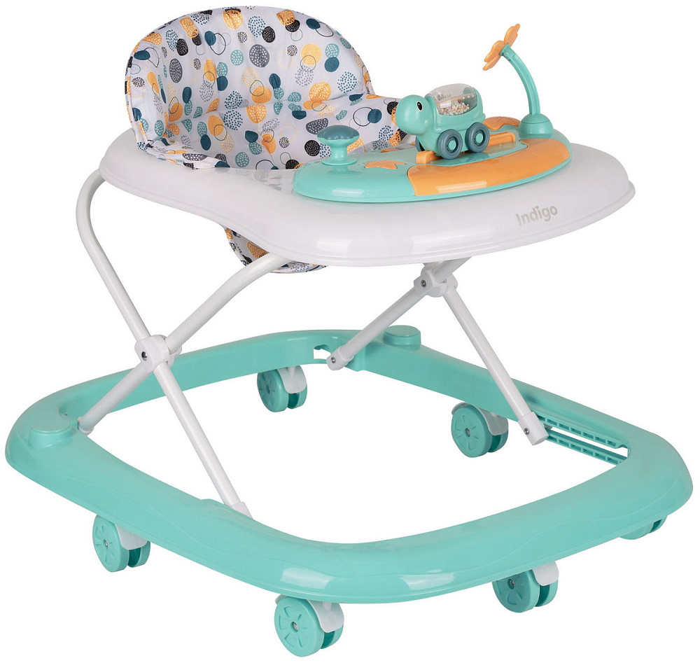 Ходунки TURTLE от бренда Indigo — функциональное решение для малышей, которые начинают делать свои первые шаги. Модель оснащена прочной конструкцией и устойчивым основанием с 7 колесами диаметром 6 см, что обеспечивает плавное движение по любой поверхности. Интерактивная игровая панель со световыми элементами и пятью мелодиями превращает обучение ходьбе в увлекательную игру.