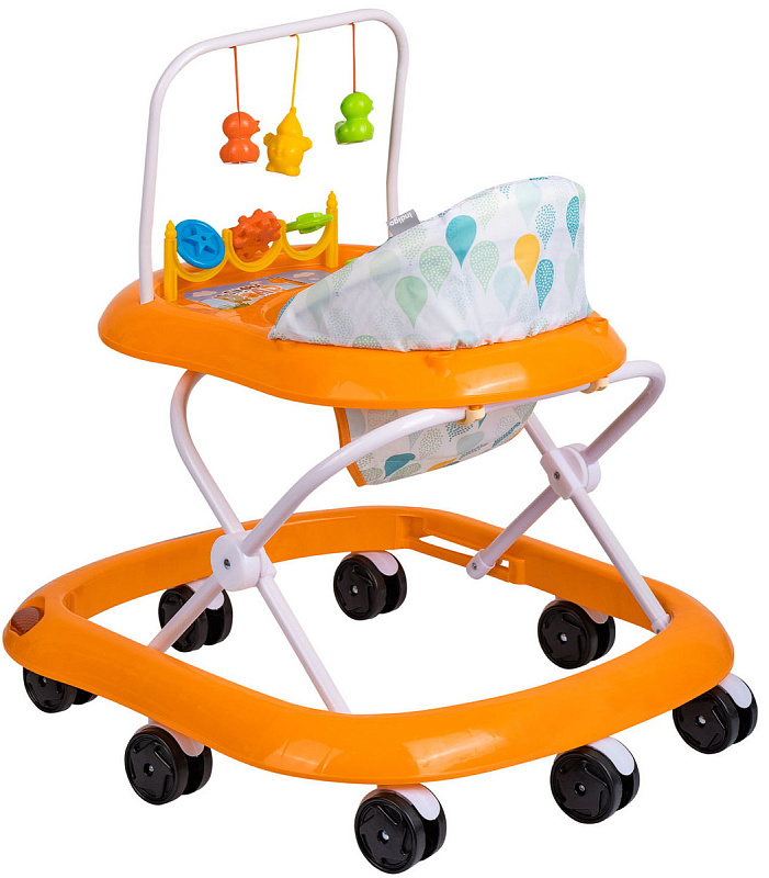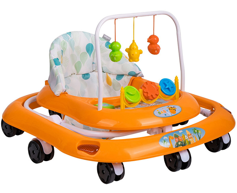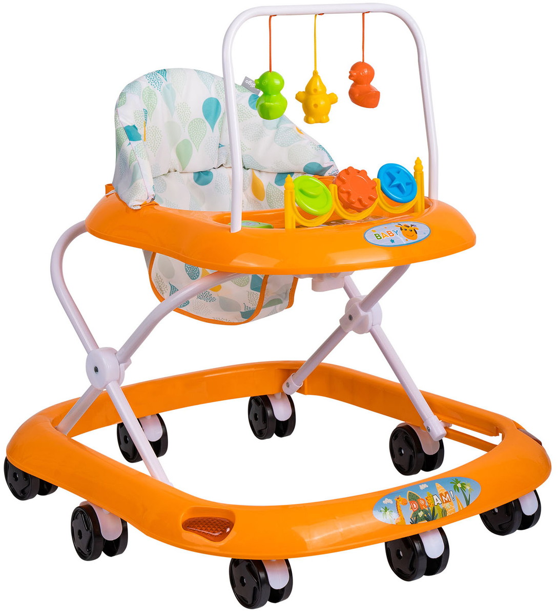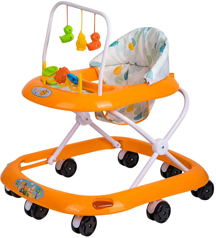 Детские ходунки INDIGO «Весело шагать» — это лёгкая и функциональная модель для малышей, которые начинают делать первые шаги. Конструкция на 8 пластиковых колёсах обеспечивает устойчивость и лёгкость движения по ровной поверхности. Три уровня регулировки по высоте позволяют настроить ходунки под рост ребёнка, обеспечивая комфортное положение при ходьбе. Мягкое сиденье со спинкой высотой 30 см создаёт удобную опору для малыша, а подвесные элементы и музыкальный телефончик превращают обучение ходьбе в интересное и познавательное занятие. Батарейка для телефончика включена в комплект.