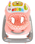Детям с 6 до 18 месяцев 6 силиконовых поворотных колес широкое основание для максимальной устойчивости 2 тормозных фиксатора обеспечивают максимальную безопасность ребенка может трансформироваться в качалку регулировка по высоте в трех положениях съемная звуковая-игровая панель с кнопками, огоньками и веселой музыкой удобный лоток.