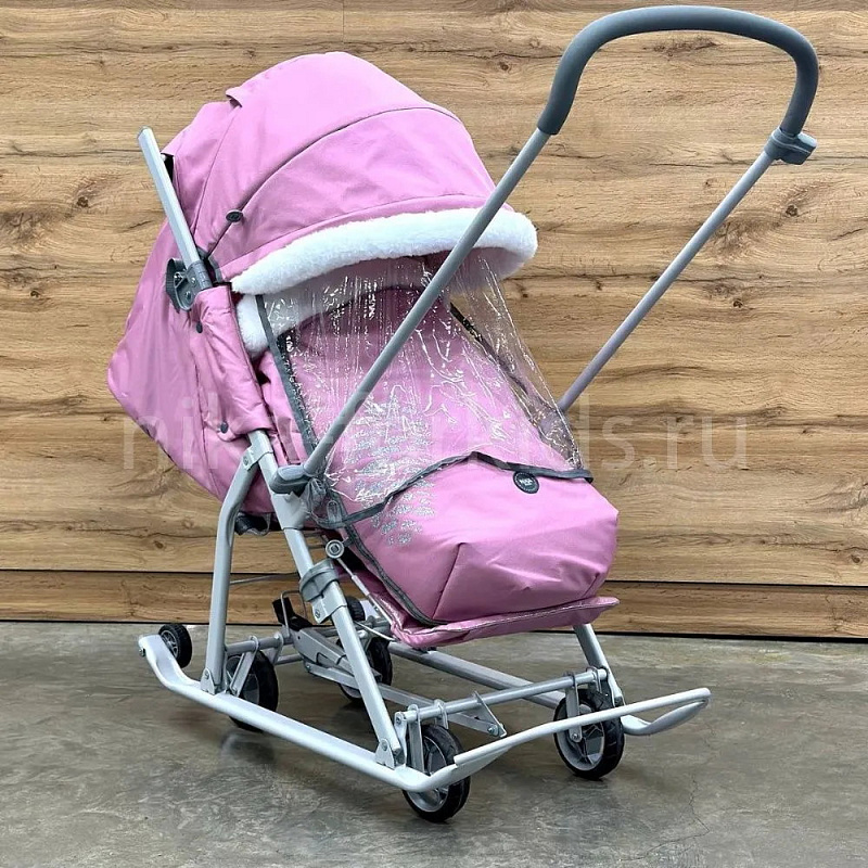 Детские санки-коляска Nika Наши Детки 7-5К пыльно-розовый Шишка серый каркас
