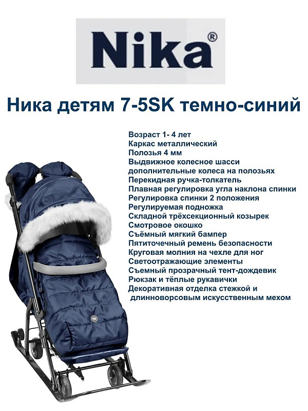 Детские санки-коляска Nika Наши Детки 7-5SК НД7-5SК/ТС темно-синий