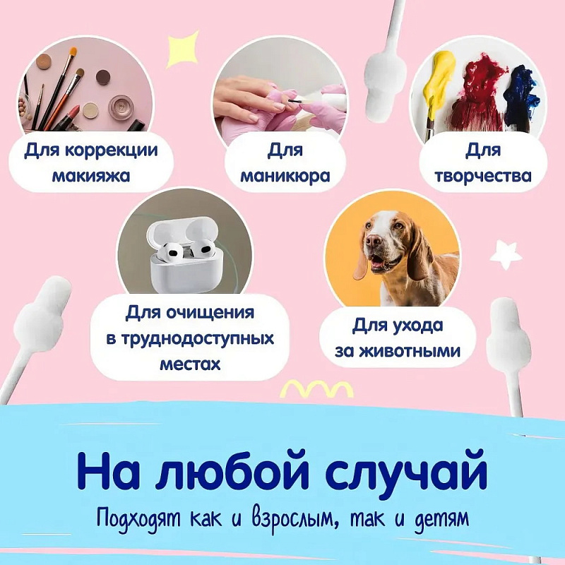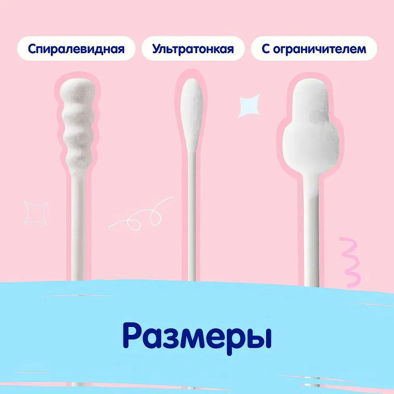 Идеально подходят для ухода за ушами, носом и пупочком малыша, подходят для удаления излишней влаги в складках кожи и между пальцами ребенка. Детские ватные палочки MEPSI специально созданы для гигиены малыша с первых дней жизни. Ватные палочки с наконечником в виде ограничителя не позволят глубоко проникнуть в ушко ребенка, исключат травмы и повреждения.
