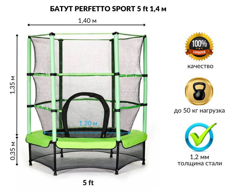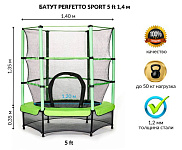 Детский батут c защитной cеткой Perfetto Sport 5 диаметр 1.4 м PS-545-G зелёныйНет оценокХарактеристики