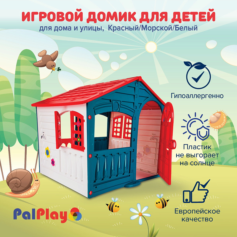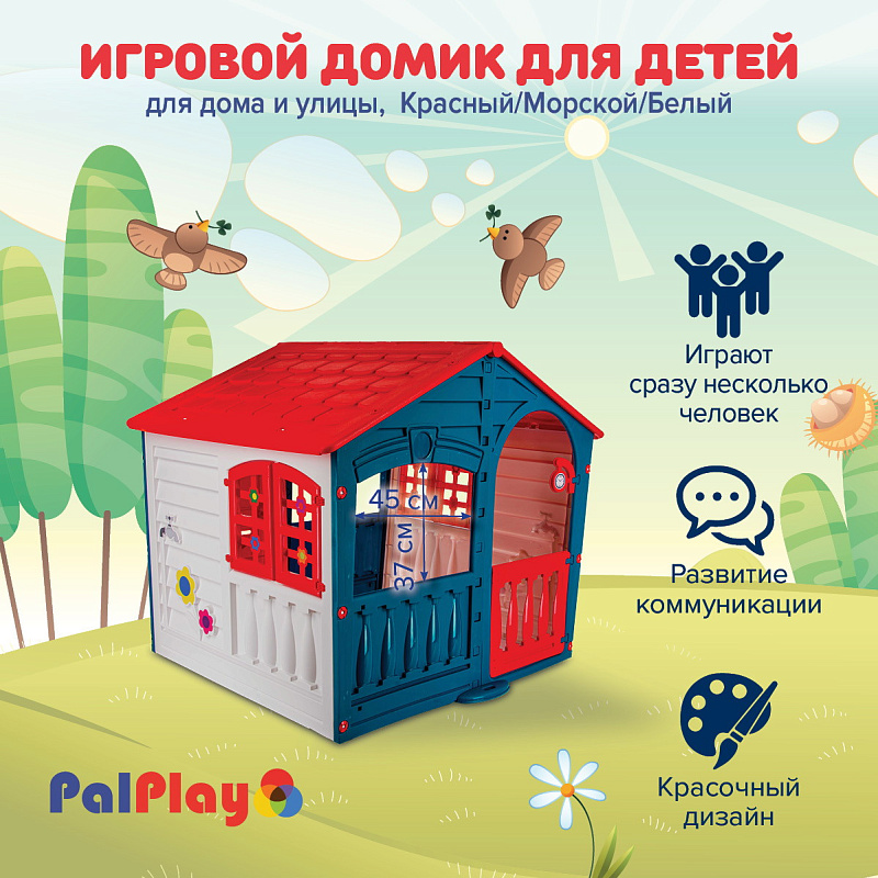Детский домик PalPlay Большой M781-TWILIGHT Красный/Морской/Белый