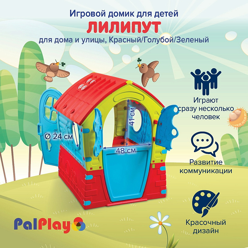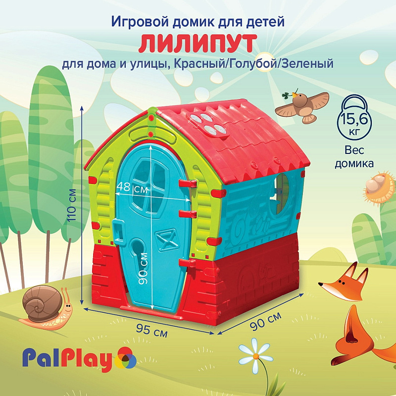 Детский домик PalPlay Лилипут голубой/зеленый/красный