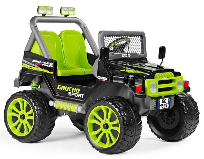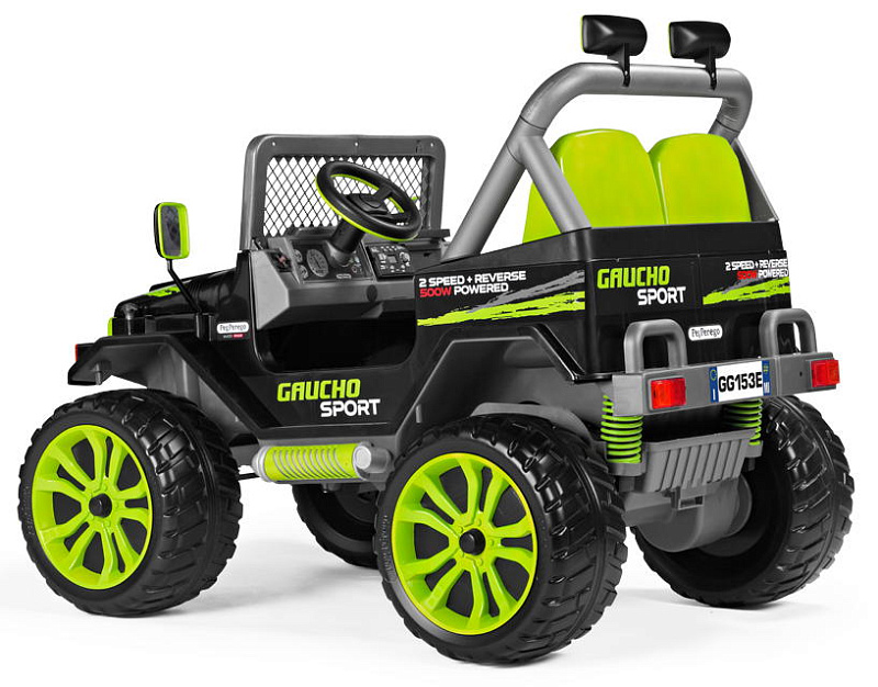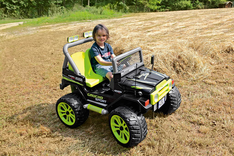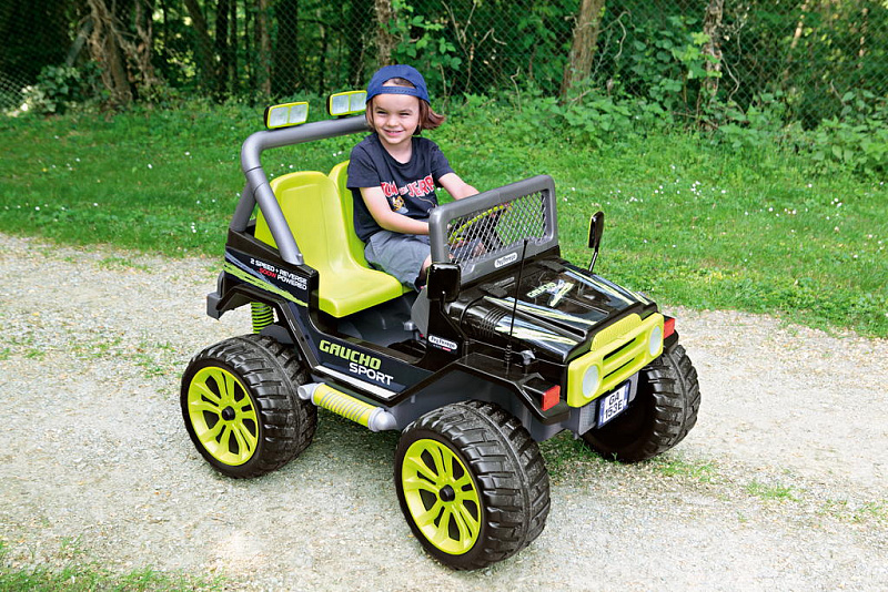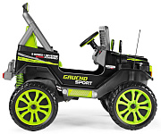Gaucho Sport - электрический двухместный джип для маленьких любителей приключений в возрасте от 3 лет и старше. Два мотора мощностью по 240 Вт каждый, действующие от подзаряжаемого аккумулятора 12 В/12 А-ч/150 Вт-ч. Зубчатая рулевая рейка обеспечивает точность и надежность рулевого управления, и этой характеристикой обладает только Gaucho. Джип оснащен мощными амортизаторами на задних колесах, за счет чего он может проезжать везде: по дороге, по траве, по неровному грунту, по пляжу, он также способен преодолевать уклоны в 17%. Маневренная и простая в пользовании модель Gaucho Sport долговечна, как и подобает изделию марки Peg Perego. Использование высококачественных материалов обеспечивают продолжительный срок службы и большую надежность.