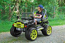 Колеса с рельефными выступами для превосходного сцепления и высокий клиренс позволяют безопасно ездить по бездорожью – даже по грунтовым дорогам и ухабистой местности, доставляя безграничное удовольствие! Благодаря мощности двойных ведущих колес внедорожник может преодолевать уклоны 17%. Амортизаторы делают езду комфортной и устраняют резкие толчки даже на пересеченной местности.