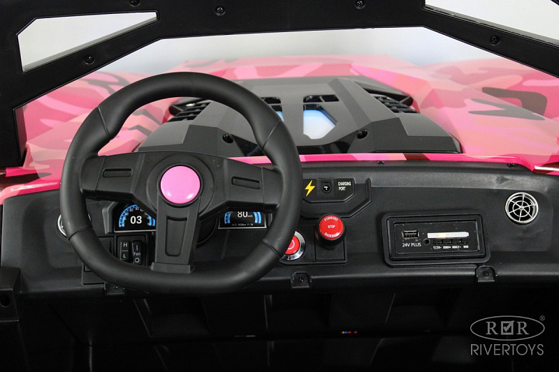 Детский электромобиль RiverToys A707AA LUX NEW 4WD PINK-CAMOUFLAGE/розовый камуфляж