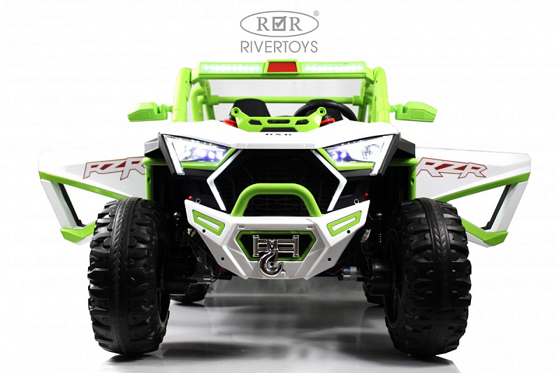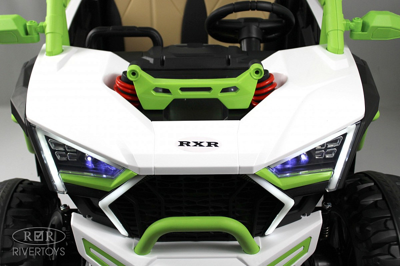 Детский электромобиль e001ee с дистанционным управлением - это двухместный полноприводный автомобиль для детей. Он оснащен различными световыми эффектами, такими как передние и задние фары, подсветка колес, передней дуги и радиаторной решетки.