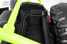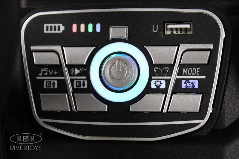 Управление осуществляется с помощью индивидуального пульта по Bluetooth и работает от двух батареек типа AA. Автомобиль также имеет амортизаторы, каучуковые колеса с запасным колесом, ремень безопасности, откидывающиеся верхние дуги и медиа-панель с USB-входом, Bluetooth, AUX и индикатором заряда батареи. Его размеры в собранном состоянии составляют 148х92х83 см, весит он 39 кг, может выдержать до 50 кг нагрузки, оборудован 24V/8Ah аккумулятором. Максимальная скорость автомобиля составляет 6 км/ч.