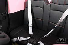 Амортизаторы и каучуковые колёса гарантируют комфорт во время движения, а эко-кожаное сиденье и пятиточечный ремень безопасности обеспечивают безопасность вашего ребёнка.