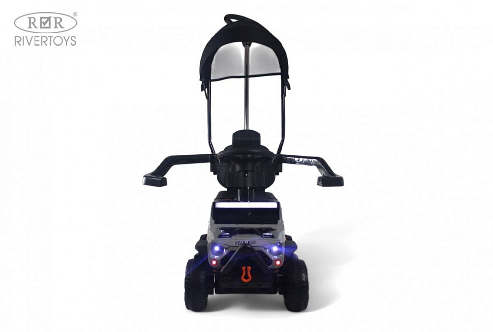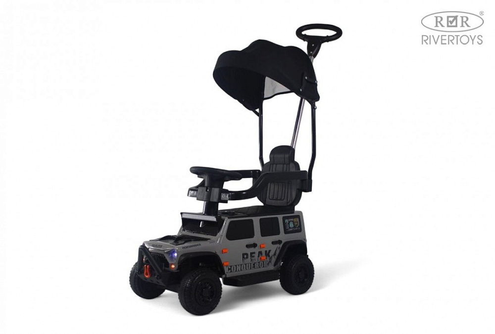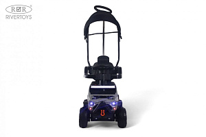 Особое внимание стоит уделить уникальным особенностям этой модели. Откидная крыша, принцип чемодана и откидные боковые фиксирующие ручки делают электромобиль удобным для транспортировки и хранения. А AUX-вход на медиа-панели позволяет подключить микрофон и устроить настоящее караоке-шоу! Мерцающая подсветка на лобовом стекле, работающая в такт с музыкой, добавит веселья и праздничного настроения.