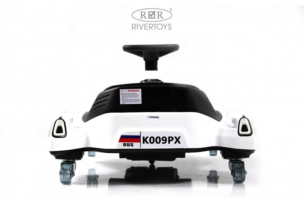 Детский электромобиль K009PX — идеальный выбор для вашего маленького гонщика! Этот дрифт-карт оснащён светодиодной подсветкой рулевой колонки, заводскими мелодиями и звуком клаксона. Управление без пульта делает игру ещё более захватывающей.
