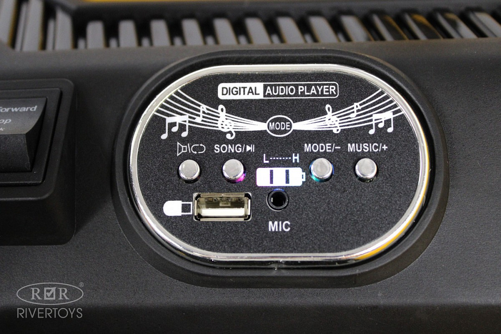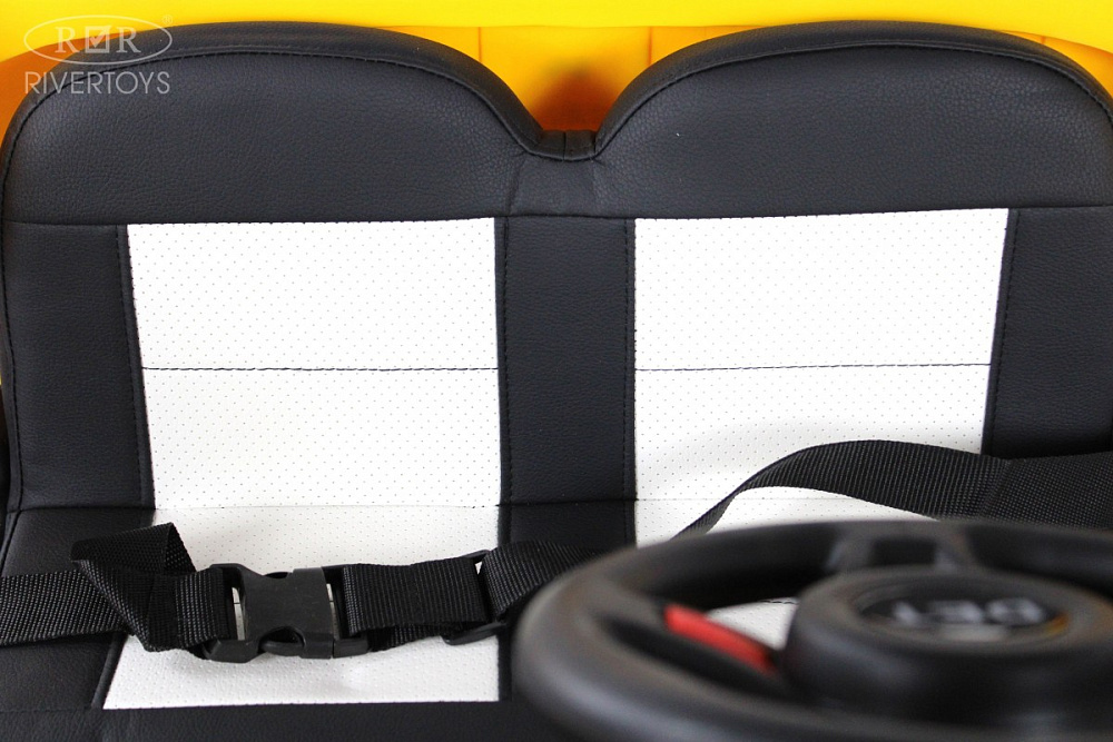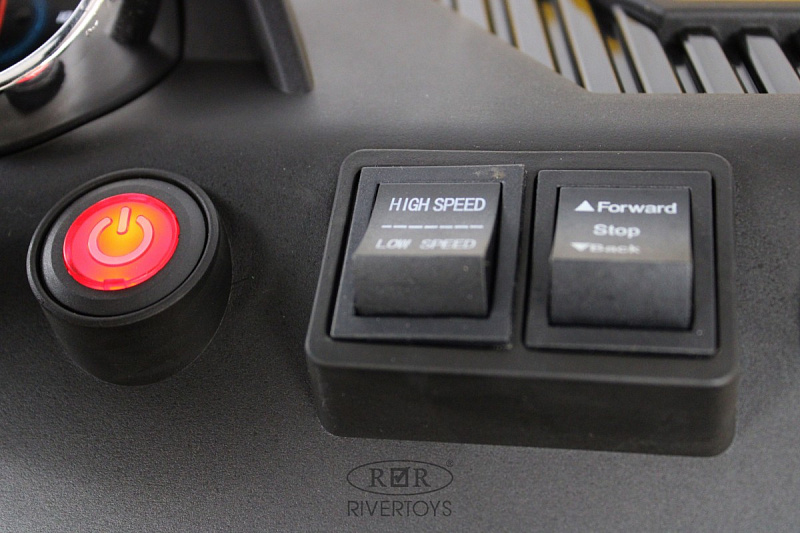 Электромобиль имеет движение вперед/назад и коробку передач, что позволяет малышу легко управлять им. Сидение изготовлено из экологической кожи, а полосной ремень безопасности обеспечивает надежную защиту ребенка во время поездки.