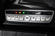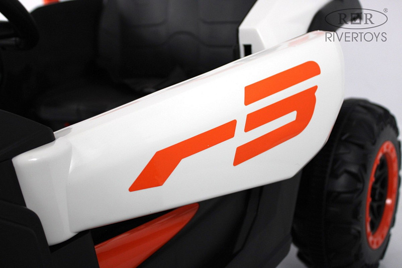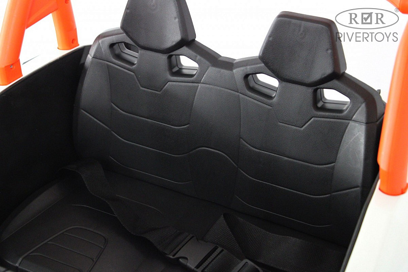 Для безопасности ребёнка предусмотрен полосной ремень безопасности, а амортизаторы обеспечивают комфорт во время катания. Медиа-панель оснащена USB-входом, AUX, Bluetooth и индикатором заряда батареи.