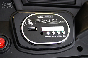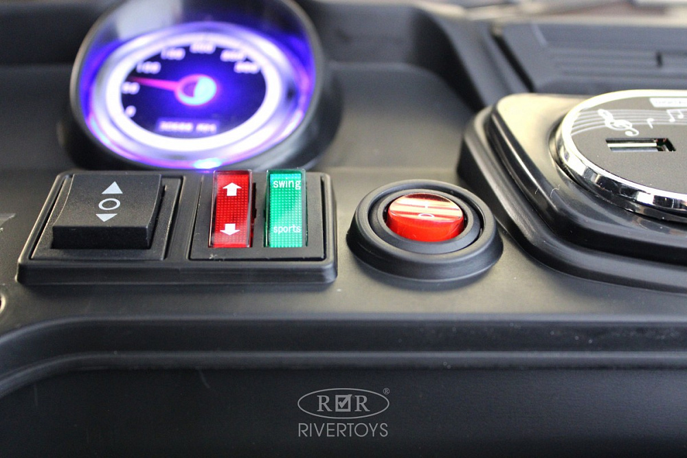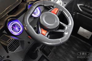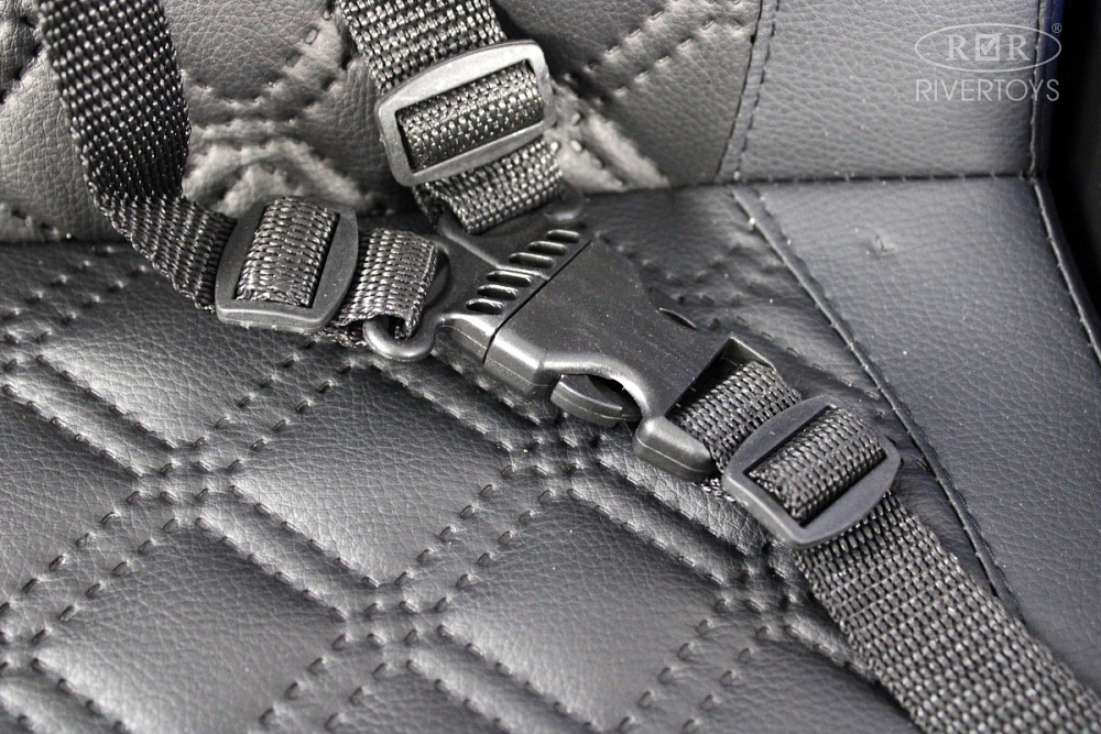Электромобиль K777AM может двигаться вперед и назад с помощью автоматической коробки передач. Сидение изготовлено из эко-кожи и оборудовано полосным ремнем безопасности, обеспечивая максимальную защиту ребенку.