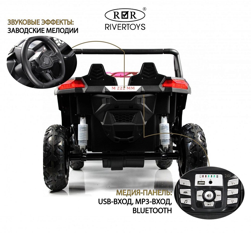 Невероятный, мощный, дерзкий, не имеющий аналогов на рынке, детский электромобиль Buggy M222MM 24V!!! Такой детской машинки Вы еще не встречали. Вам наскучили однообразные детские кары, с минимальной скоростью, Ваш малыш активный и уже управляется с любым видом транспорта? Тогда эта модель точно для Вас! Buggy M222MM это настоящий Багги среди детских игрушек! Модель развивает скорость до 15 км/ч, едет практически по любой поверхности или препятствиям. Так же оснащен мощным двигателем и аккумулятором 24v. Такой автомобиль отлично подойдет одному или двум активным и самостоятельным любителями техники для катания. Ваш малыш будет в восторге от такого транспорта.