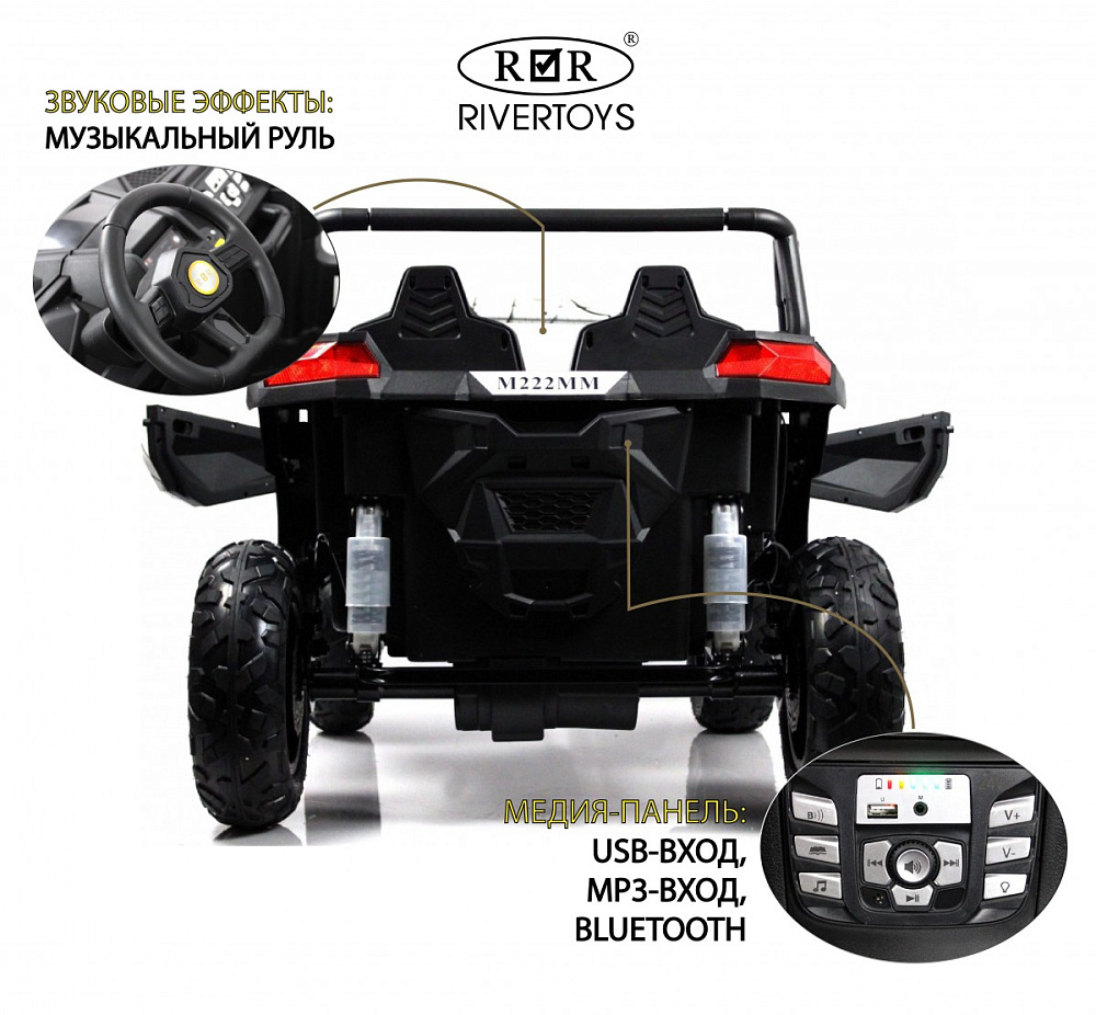 Невероятный, мощный, дерзкий, не имеющий аналогов на рынке, детский электромобиль Buggy M222MM 24V!!! Такой детской машинки Вы еще не встречали. Вам наскучили однообразные детские кары, с минимальной скоростью, Ваш малыш активный и уже управляется с любым видом транспорта? Тогда эта модель точно для Вас! Buggy M222MM это настоящий Багги среди детских игрушек! Модель развивает скорость до 15 км/ч, едет практически по любой поверхности или препятствиям. Так же оснащен мощным двигателем и аккумулятором 24v. Такой автомобиль отлично подойдет одному или двум активным и самостоятельным любителями техники для катания. Ваш малыш будет в восторге от такого транспорта.