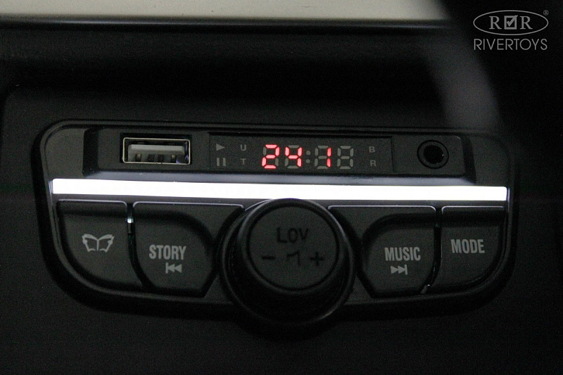- Медиа-панель: поддерживает подключение через USB и AUX, имеет индикатор заряда батареи, Bluetooth, радио и регулировку громкости.