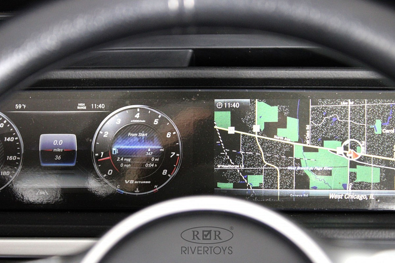 - Особенности: открывается капот (место для хранения), коврик AMG, расширенные колёсные арки из карбона, светодиодная «люстра» на лобовом стекле, противоударный брус под задним бампером.