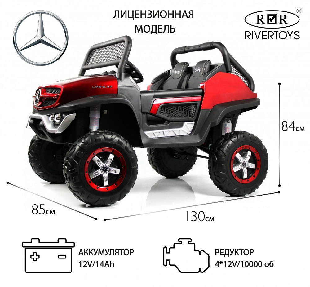 Детский электромобиль RiverToys Mercedes-Benz Unimog Concept P555BP Вишневый глянецНет оценокХарактеристики