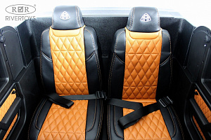 - Двухместное кожаное сиденье с фирменной эмблемой