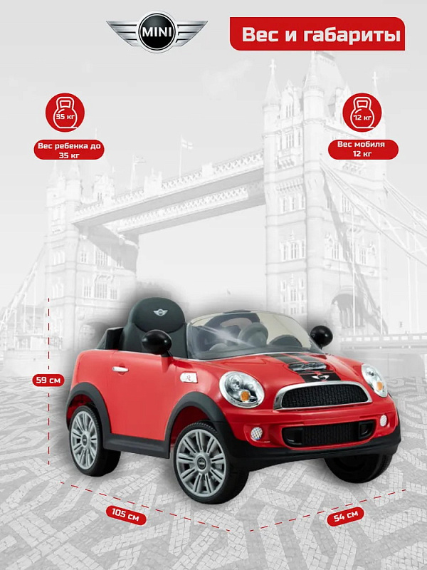 Прокатитесь стильно с 6 - вольтовым MINI Cooper Premium Edition от RollPlay! Аутентичный МИНИ - внешний вид делает его идеальным детским электромобилем для маленьких фанатов в возрасте от трех лет. Еще большая мощность позволяет маленьким искателям приключений без особых усилий передвигаться по неровным и травянистым поверхностям со скоростью до 5 км/ч. Прилагаемый пульт дистанционного управления с функцией easy-stop обеспечивает дополнительную безопасность, позволяя родителям управлять автомобилем в случае необходимости.