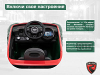 Жидкокристаллический сенсорный экран, включая радио и Bluetooth-соединение, позволяет маленьким водителям выбирать свою собственную музыку во время поездок. Особенно полезен для родителей пульт дистанционного управления, включенный в премиум-версию, позволяющий управлять электромобилем на расстоянии.