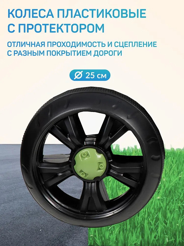 - колеса пластиковые с протектором, диаметр колес 25 см