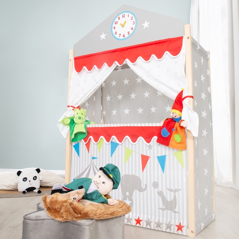 Детский театр развивает творческий потенциал и воображение детей. С большим игровым кукольным театром Roba сразу несколько детей могут одновременно разыгрывать маленькие пьесы и вживаться в новые роли. Красочный и яркий театр оснащен занавесками и часами с подвижными стрелками, обеспечит максимум веселья и "пунктуальность" выступлений в детской комнате. Текстильные декорации с веселым принтом в виде цирковых мотивов превратят игру в красочное шоу.
