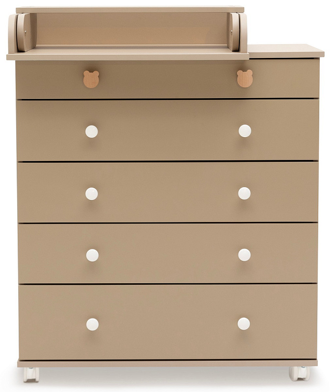Конструкция Lino предусматривает откидную пеленальную доску, которая вдвое увеличивает доступное пространство для ухода за ребенком. Четыре просторных ящика вместят все необходимые принадлежности, обеспечивая быстрый доступ ко всему необходимому.