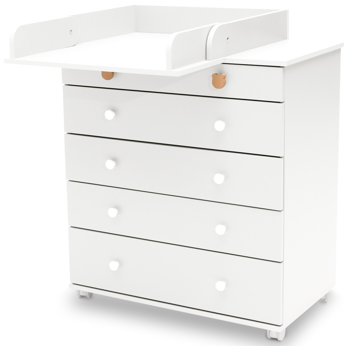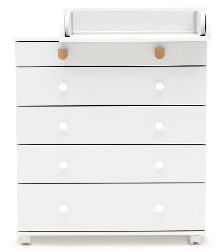 Конструкция Lino предусматривает откидную пеленальную доску, которая вдвое увеличивает доступное пространство для ухода за ребенком. Четыре просторных ящика вместят все необходимые принадлежности, обеспечивая быстрый доступ ко всему необходимому.