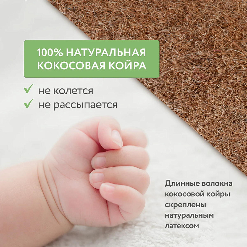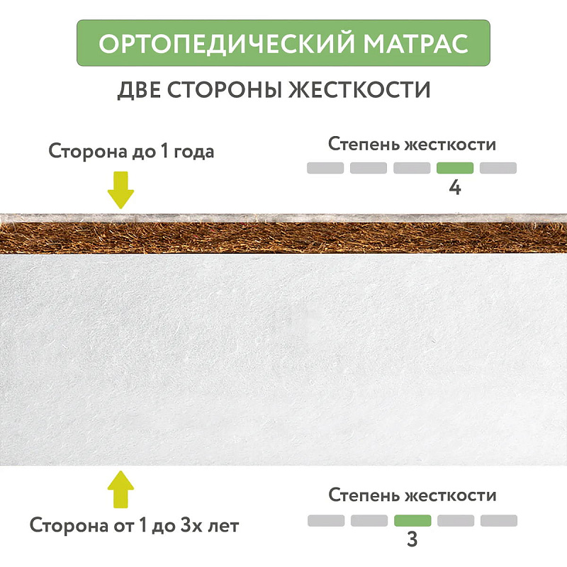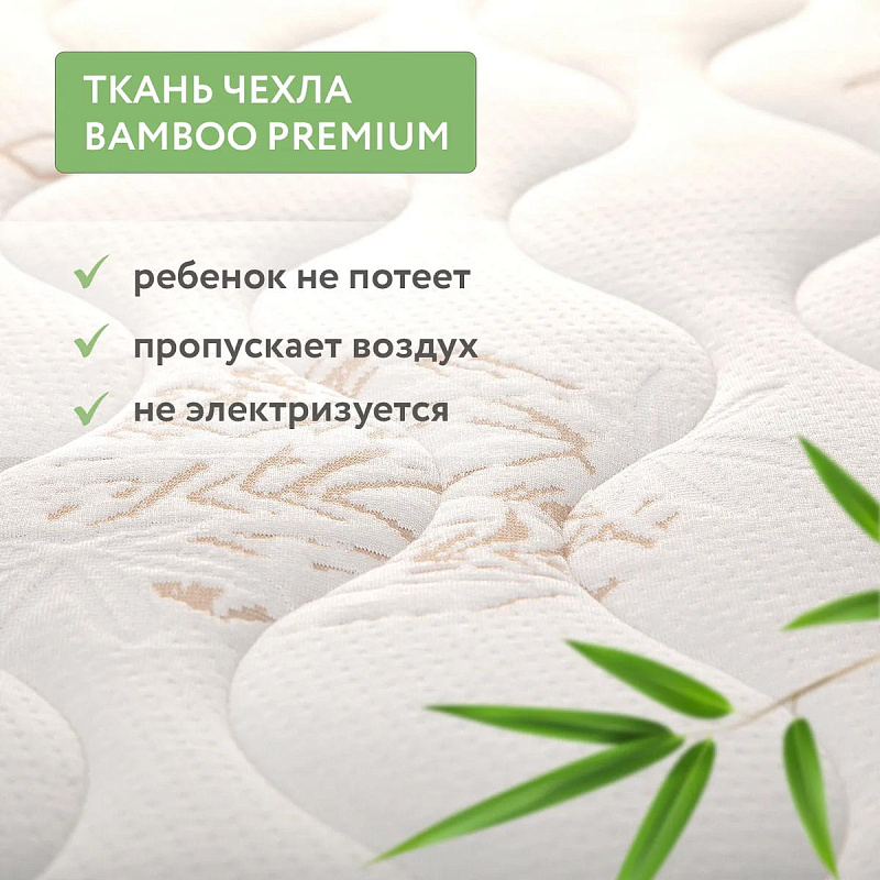 Детский беспружинный матрас на основе сочетания плотных натуральных и инновационных наполнителей. Комбинация кокосовой койры по двум внешним сторонам и экологичного Bamboo Fibre в основе модели создает надежную поддержку позвоночника ребенка.