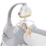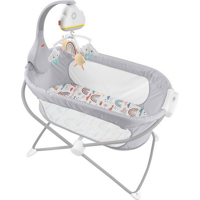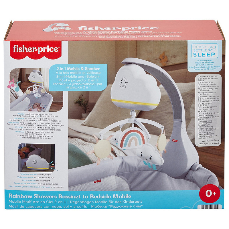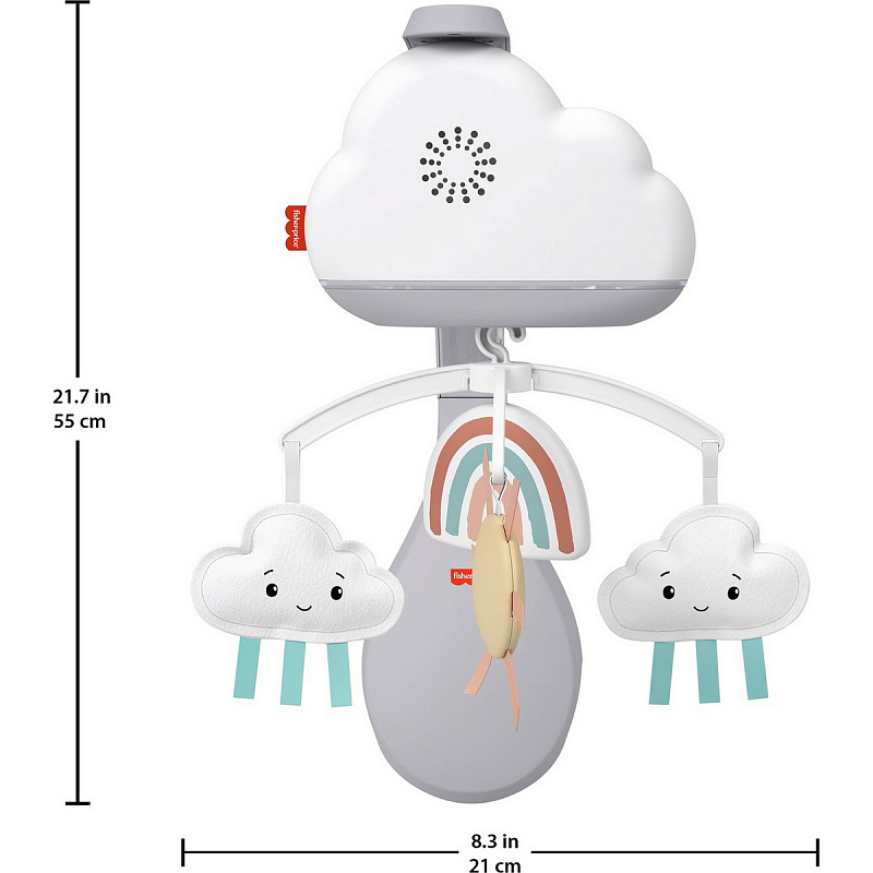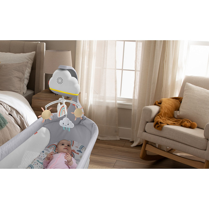 Мобиль “Радужные сны” от Фишер-Прайс с красивым солнышком и мягкими облачками может проигрывать 20-минутные мелодии, которые помогут вашему крохе расслабиться и погрузиться в сладкий сон. Встроенный шумовой датчик улавливает крик малыша и автоматически запускает приятную музыку. По мере взросления ребенка мобиль Fisher-Price можно трансформировать в настольное успокаивающее устройство с функцией ночника. Не предназначен для использования в манежах с навесом или кроватках с балдахином.